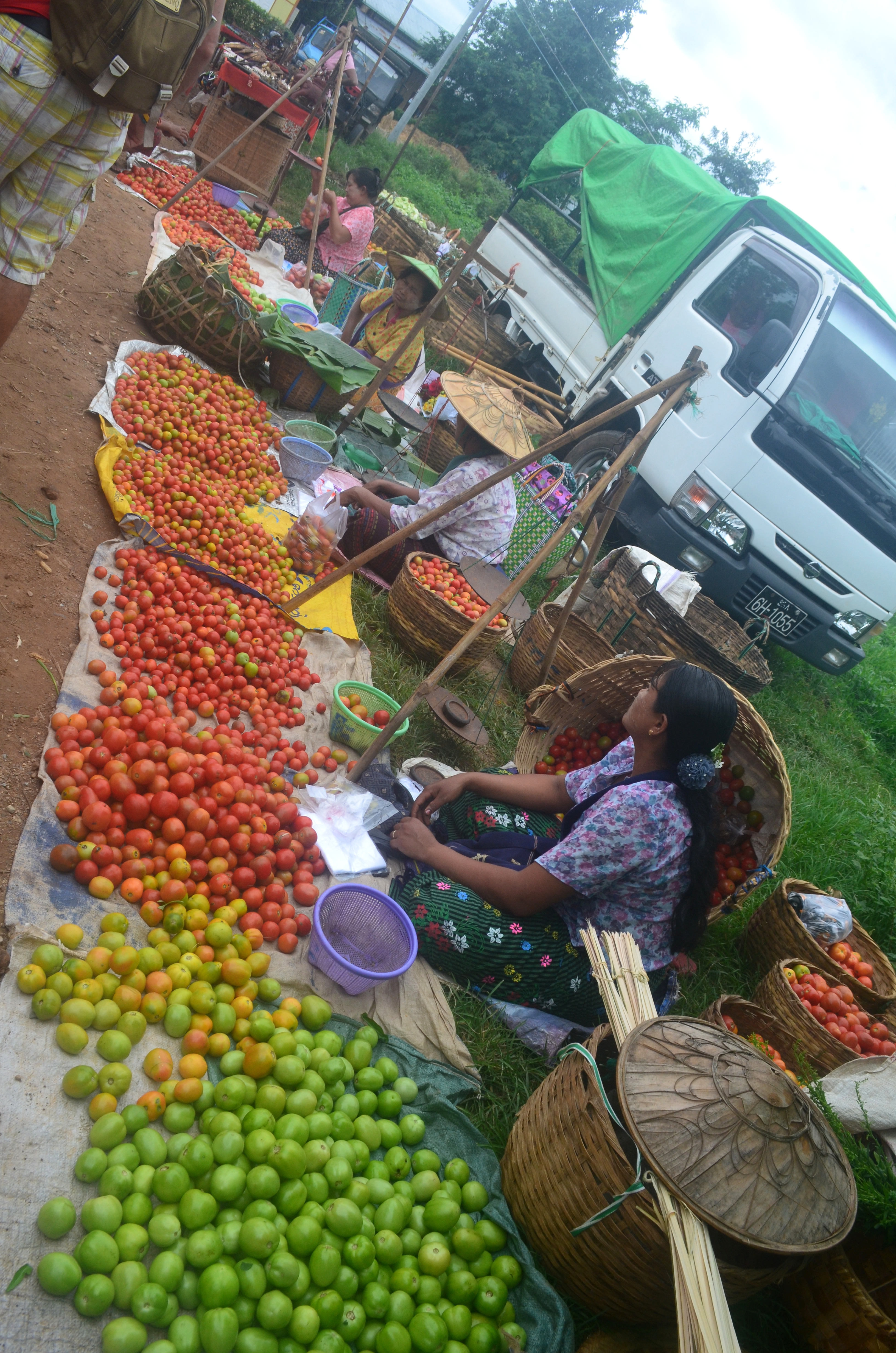 Chạy thuyền trên Inle là khoảng thời gian thư giãn với cảnh núi non, biển nước. Hai bên là hai rặng núi chạy dọc theo lòng hồ, cách một đoạn lại thấy những đỉnh tháp vàng mọc lên giữa núi, giữa mây trắng trời xanh, là những ruộng cà chua quây hàng thẳng tắp bởi những cây nứa nhỏ xiên chéo lên nền trời. Thời tiết ở Inle hôm đó không được đẹp như chiều hôm trước, bầu trời khá nhiều mây. Cái nắng ở Inle không gắt nhưng không thể xem thường, nó đã biến tôi thành một bức ảnh bị chỉnh tương phản quá tay – khi mà màu da ở những phần nhận và không nhận ánh nắng không hề có chút tương đồng nào.