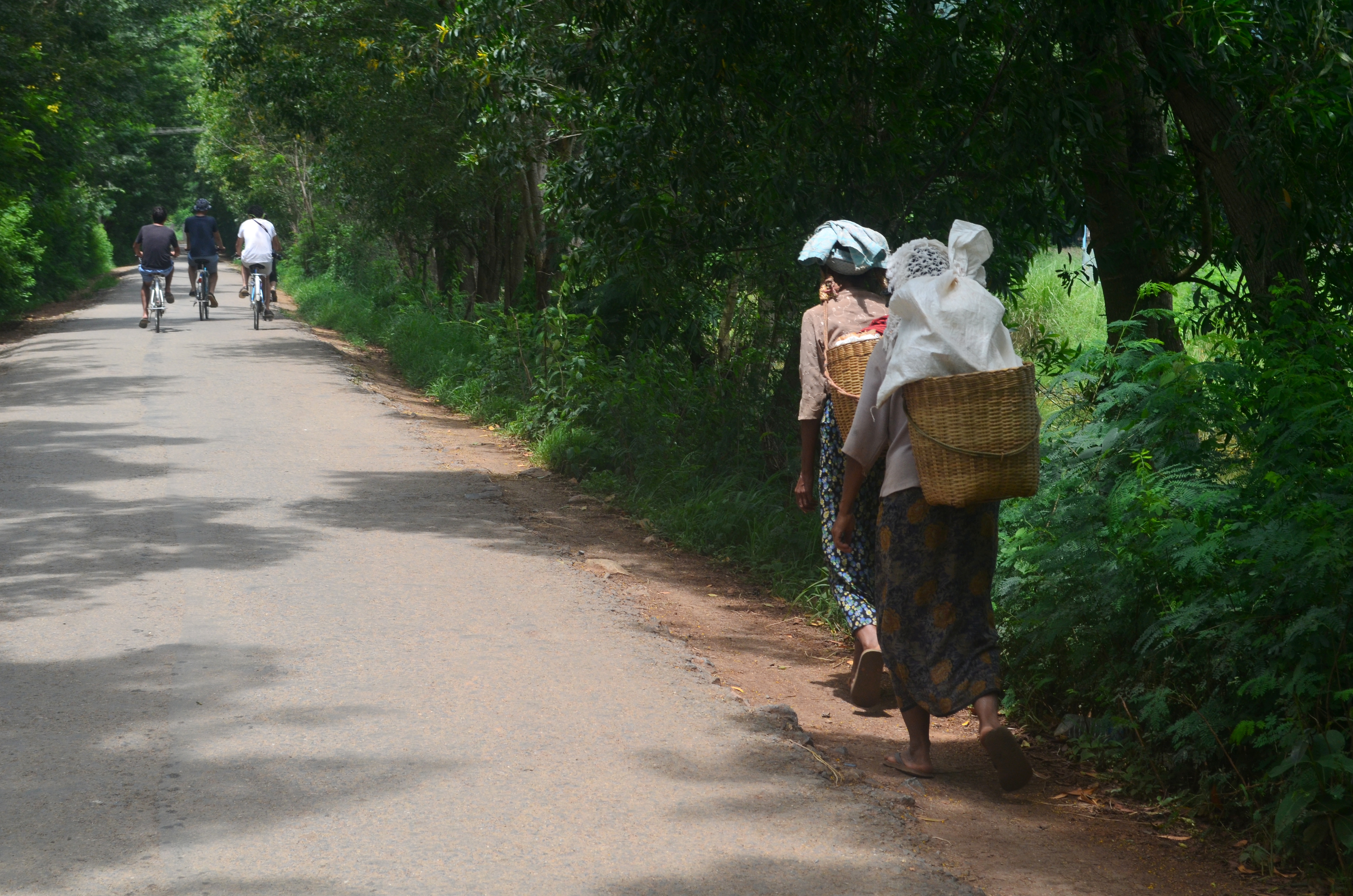 Ngày cuối cùng chúng tôi dành ra cho một tour xe đạp trên con đường bao quanh Inle. Đi qua những cánh đồng lúa xanh, làng mạc nơi có những đứa trẻ thân thiện, miệng luôn cười và nói xin chào – Mingalabar. Tôi thực sự thích ngày hôm đó. Một ngày chỉ dành riêng cho việc lang thang trong những khung cảnh bình dị, vô lo vô nghĩ chìm vào trong cái thanh yên của cung đường vắng vẻ chạy quanh sườn núi, hay bữa ăn trưa bên vườn thanh long chín hồng. Tôi yêu cái thong dong của việc đạp xe, dừng lại giữa chừng, leo lên một ngôi chùa trên đỉnh núi để ngắm nhìn phong cảnh của toàn vùng. Rồi lại tiếp tục rong ruổi dọc theo những con đường rợp bóng cây. Cuối ngày, chúng tôi chia tay nhau tại thị trấn, lần này là chia tay thực sự. Cô bạn người Ý vội ra bến xe bus đi Bagan còn không quên nhắn rằng đã lấy địa chỉ Facebook của tôi rồi, hẹn gặp lại ở Việt Nam để đưa cô ấy đi cafe rồi guồng chân đạp xe đi mất.