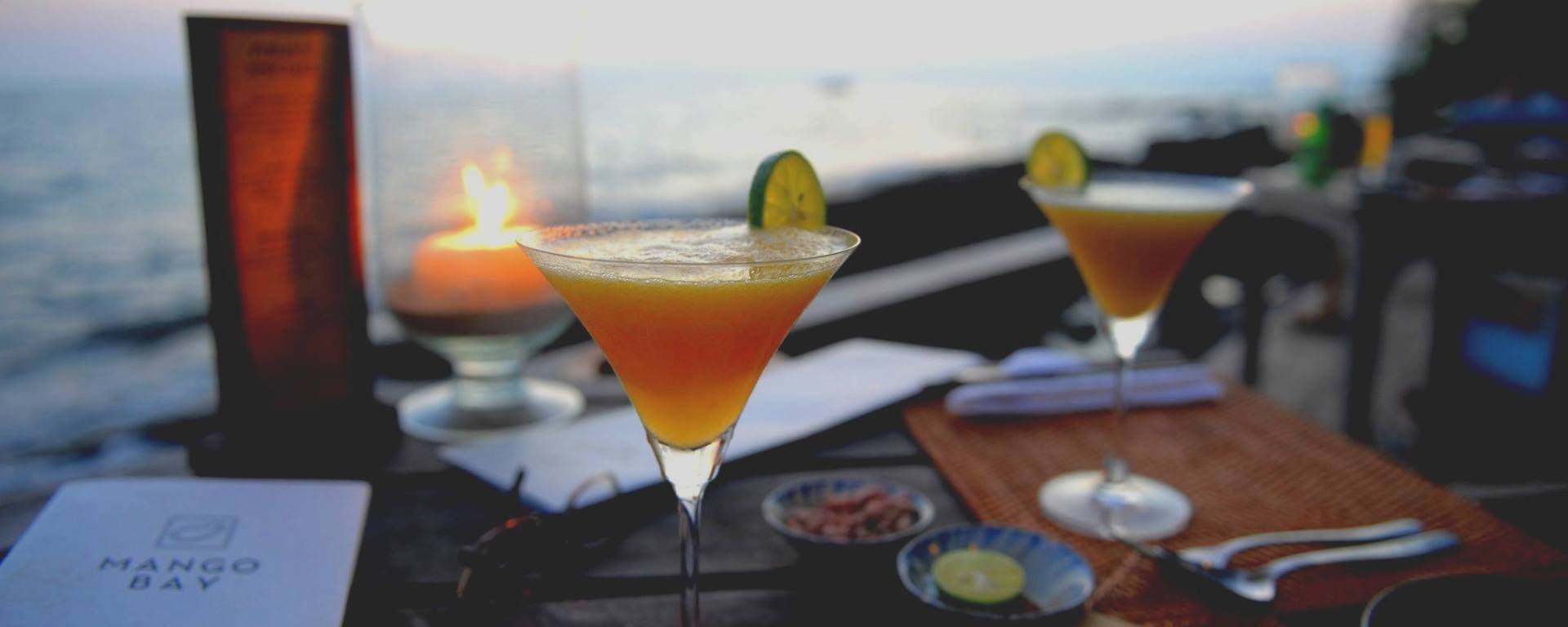 Chào đón chúng tôi với chiếc khăn ướp nước lạnh, thêm chút chanh thơm ngát và hai cốc nước quả dìu dịu, bạn phục vụ giới thiệu cơ bản với chúng tôi về Mango Bay, về nhà hàng nơi chúng tôi đang ngồi, về các dịch vụ đi kèm đồng thời làm thủ tục check in.