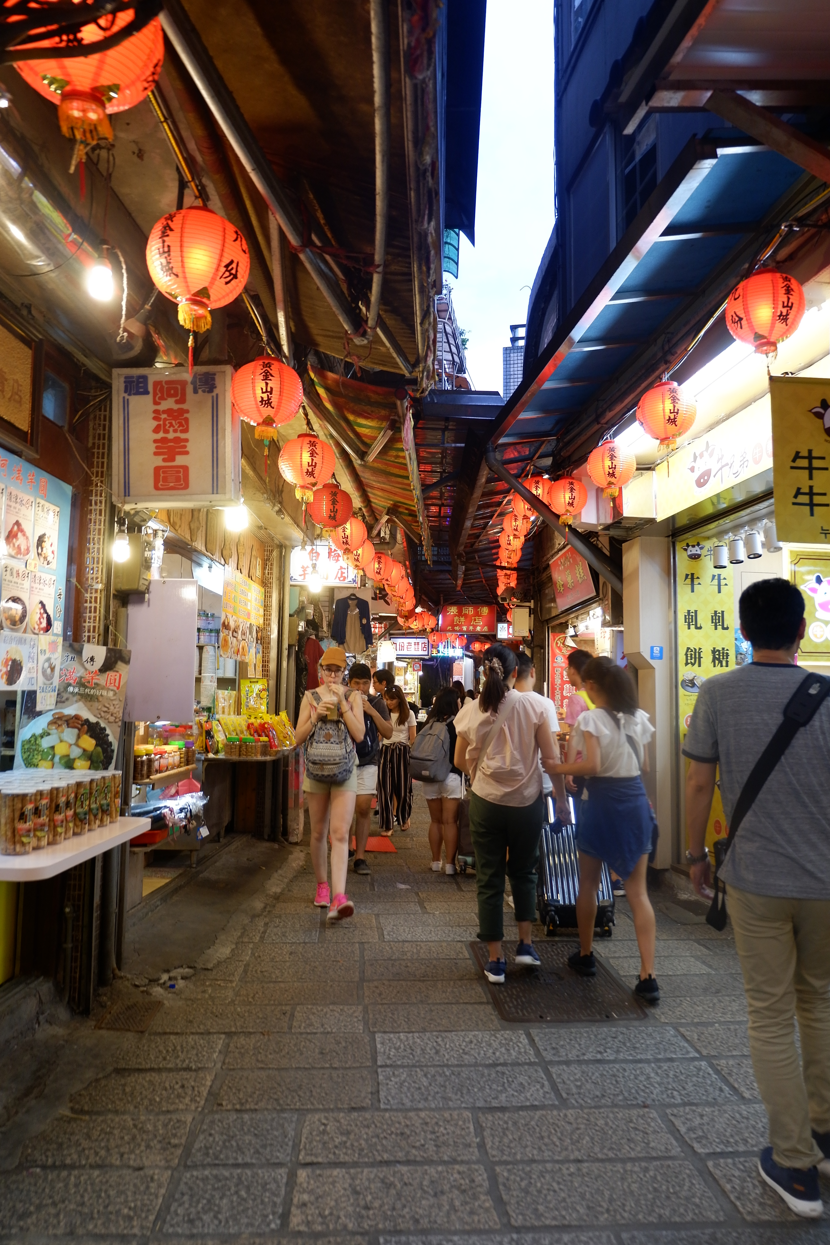 Cửu Phần hấp dẫn du khách với những dãy phố nhỏ treo đèn lồng, ngào ngạt mùi thơm của các món ăn vặt và hương trà thoang thoảng nhẹ nhàng. Đến Cửu Phần, du khách gần như có thể thử hết những món ăn vặt nổi tiếng của Đài Loan: trà sữa, bánh crepe, bánh nướng nhân đậu đỏ hoặc nhân bơ, các xiên nướng xúc xích, thịt, mực, bạch tuộc, món trứng chưng rượu, kẹo lạc bào, bánh dứa… Cũng phải kể đến món mỳ thịt bò mà người ta kháo nhau rằng nhất định phải thử khi tới Đài Loan, Cửu Phần có một tiệm mỳ đã từ lâu đời với nước dùng rất thơm và thịt bò đặc biệt ngon. Đi hết con phố từ ngoài đường chính dẫn vào, rẽ phải chỉ vài bước chân nữa là tới.