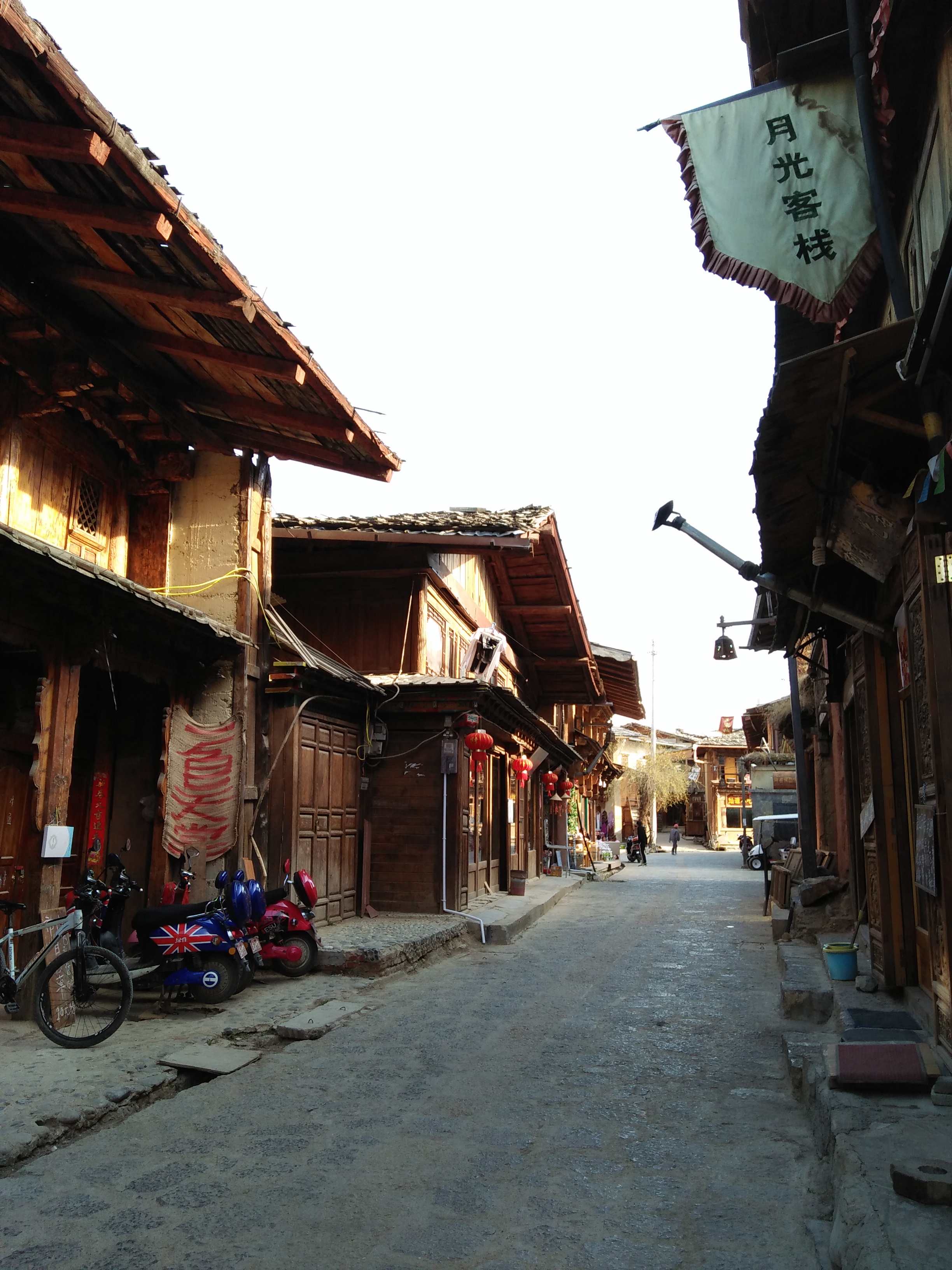 Chẳng hề giống như Lệ Giang, Shangri-La ban đêm vắng người đến lạ. Con phố ban ngày đã chẳng mấy khách du lịch, ban đêm chỉ còn lại vài chiếc bóng lẻ, cửa tiệm cũng chỉ còn lác đác vài nơi sáng đèn. Bên trong quán lẩu bò, chỉ một mình cô chủ phục vụ vài bàn thực khách đến tận gần 11 giờ đêm vẫn tươi cười, dù cho tấm biển hiệu trên cửa sổ ghi giờ đóng cửa là 22h, bằng cả tiếng Trung và tiếng Anh. Bên ngoài cửa tiệm tạp hóa lúc nửa đêm, trên bộ bàn ghế kê sẵn ngoài hiên, chúng tôi mượn cớ uống thêm vài lon bia cho dễ ngủ để ngồi nói thêm đôi câu chuyện, nghe tiếng đàn, tiếng hát vọng ra từ quán bar phía đối diện. Nhạc chưa dừng, chúng tôi chưa nỡ đứng dậy, anh trai tạp hóa cũng chưa vội đóng cửa tiệm còn mời ăn thử vài miếng thịt bò sấy khô. Và bên trong quán bar nhỏ của buổi tối ngày hôm sau, vẻn vẹn chỉ hai bàn có khách ngồi, uống vài ly nước. Trên sân khấu nhỏ, anh chàng ca sĩ lúc chơi ghi-ta, lúc lại cajon, hát nghêu ngao những bài mình yêu thích, thỉnh thoảng đổi ngôi cho chị chủ quán, anh đệm nhạc hoặc ra làm phục vụ bàn nếu có khách gọi đồ. Quán không có khách, anh chị vẫn hát, và có thể lịch sự từ chối những yêu cầu chọn bài không hợp gu nhạc từ phía khán giả. Tôi thích những người như vậy, những người luôn luôn chỉ là một cái tôi mà mình yêu thích, không vì ai thay đổi, để cho những yêu thích cái tôi ấy tự mình tìm đến, không yêu thích sẽ tự mình rời đi.