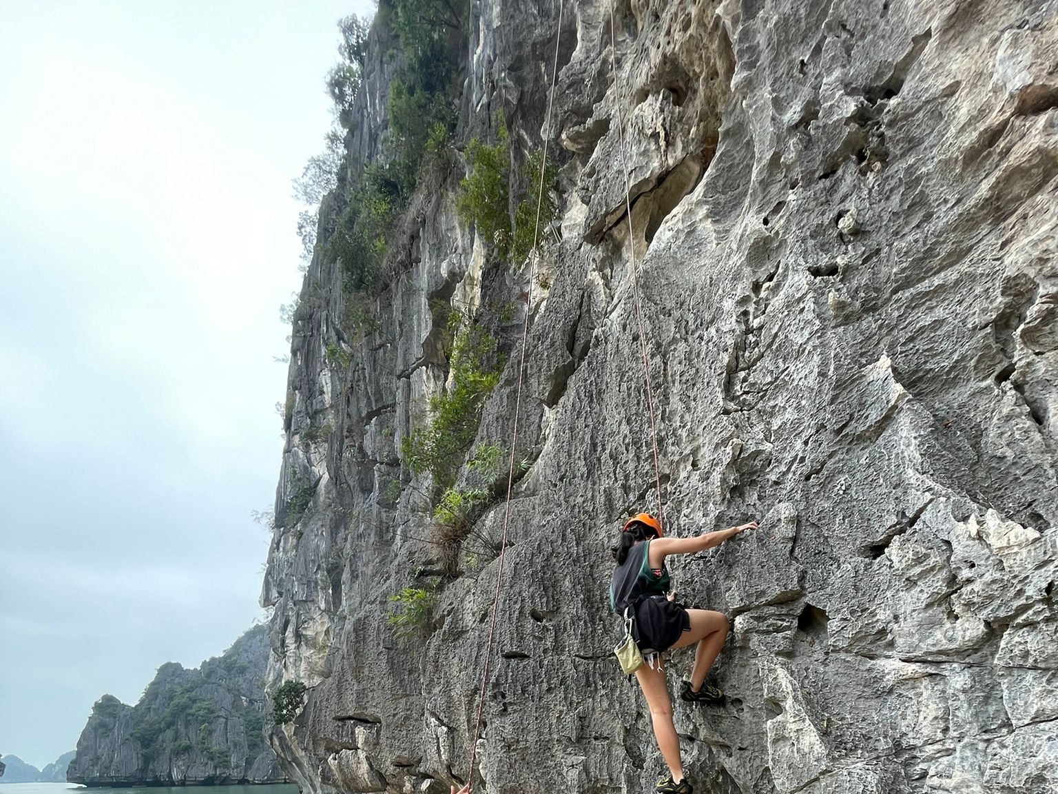 Ngày thứ ba ở Cát Bà, Táo đi theo tour ra vịnh, buổi sáng xuất phát có tất cả 10 khách, đi tàu ra vịnh sẽ được chia thành hai nhóm theo các hoạt động. Trưa ăn cơm xong những khách đi nửa ngày lên tàu về trước, chỉ còn lại một cặp đôi đi theo lịch trình cả ngày, Táo và anh leader. Trong lúc đợi nước triều dâng , đủ độ sâu để nhảy deep water solo, cả team quay lại điểm leo núi đá để hai bạn chinh phục nốt cung khó nhằn nhất, cũng để Táo thử sức lần đầu với bộ môn này ở một đường leo với độ khó trung bình. Táo nghĩ sớm thôi mình sẽ quay lại Cát Bà để hoàn thành các mức cao hơn, và cả deep water solo mà lần này vì lý do sức khỏe chưa được thử sức.