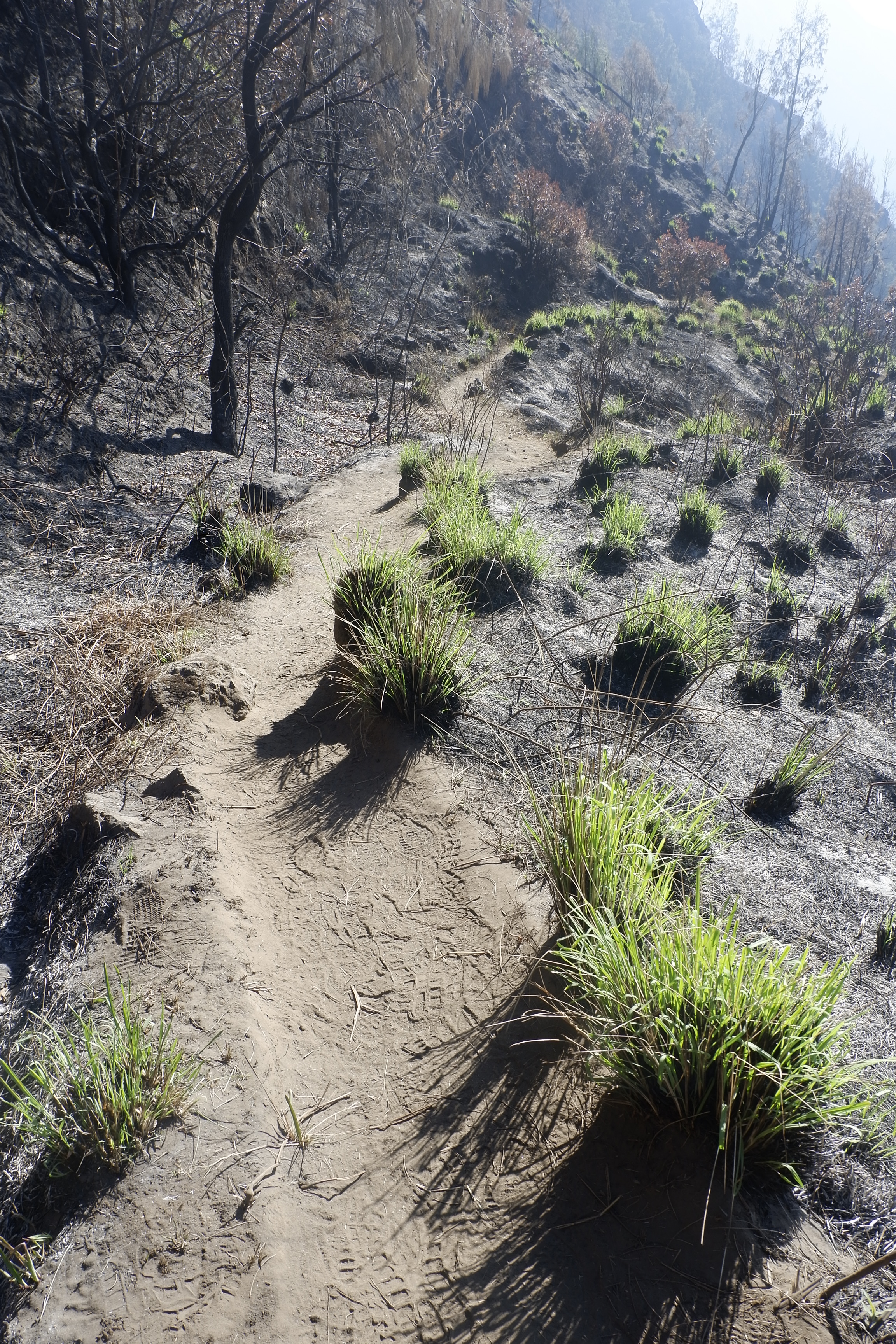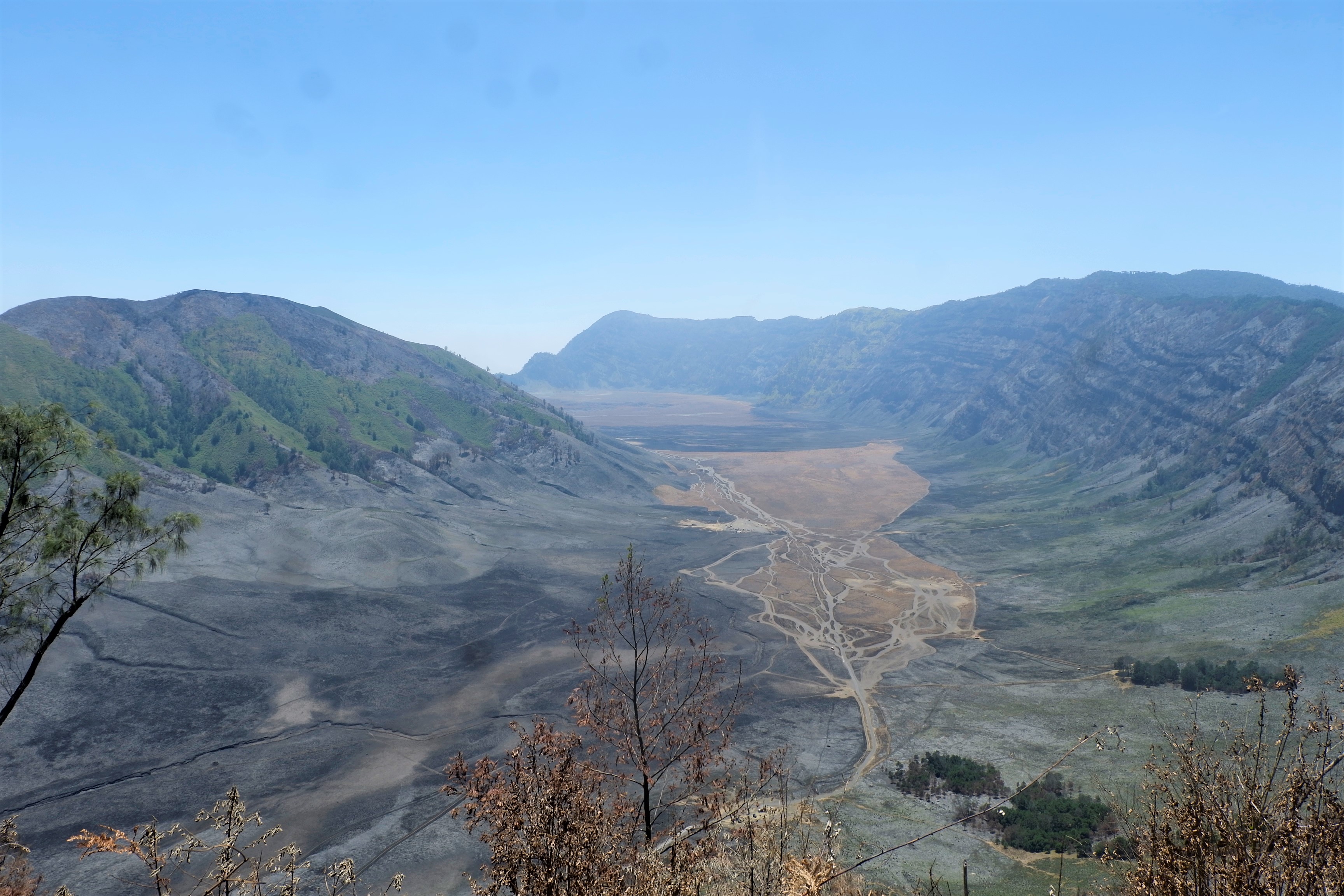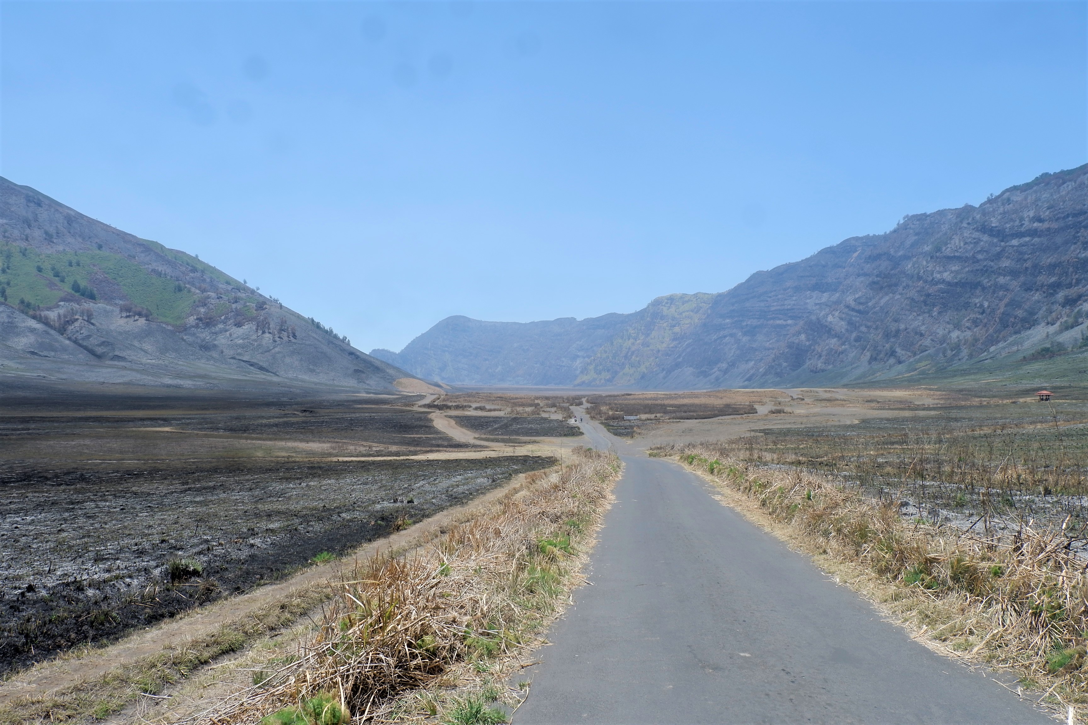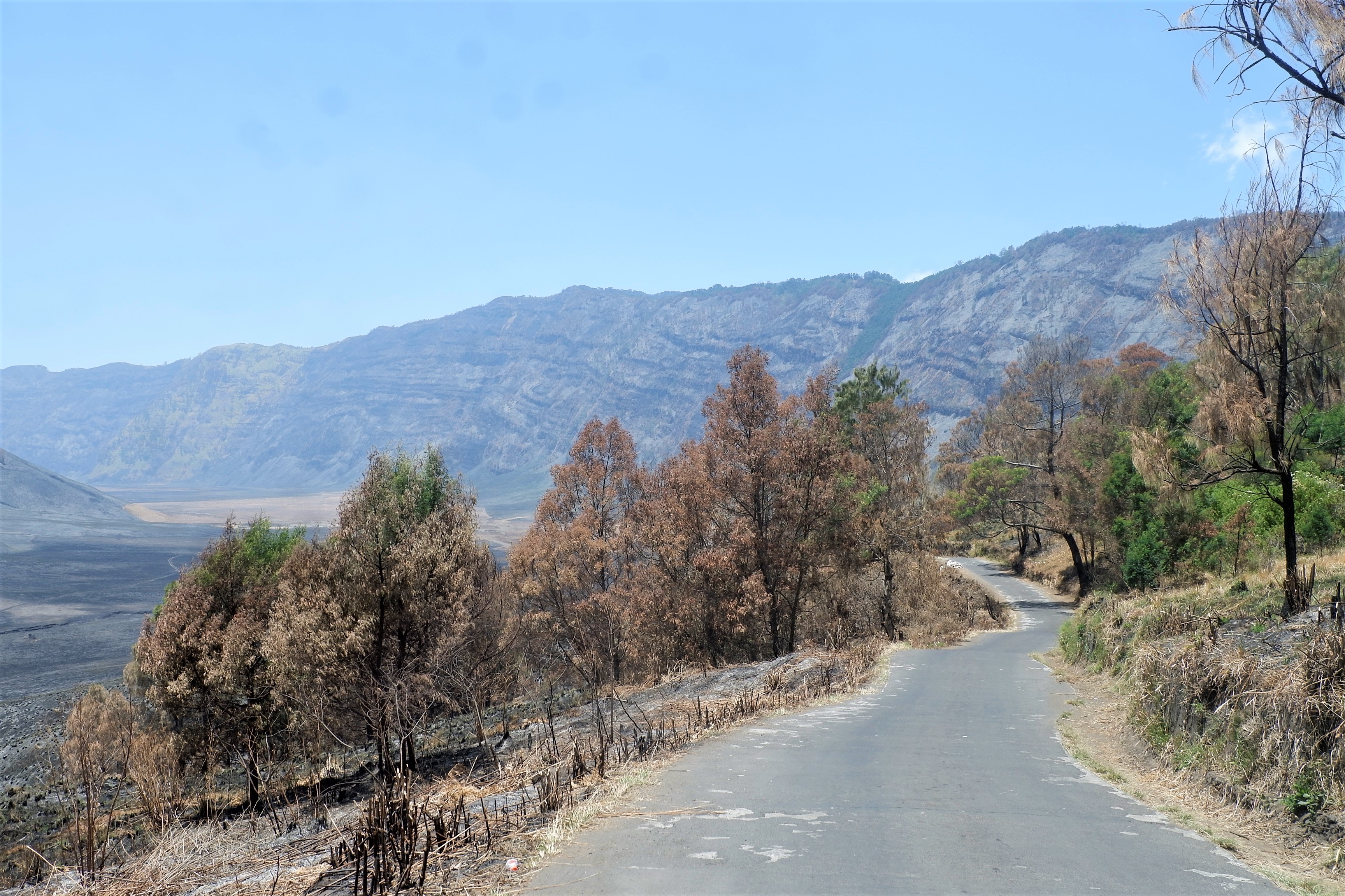 Từ Malang, theo con đường hiện trên Google Map thì chỉ cần lái xe khoảng gần 60km là tôi đã tới được homestay ở Cemoro Lawang, nhưng thực tế thì không được nhanh gọn lẹ như vậy. Qua cánh cổng vào vườn quốc gia, sóng điện thoại bị ngắt hoàn toàn khiến cho bản đồ không hoạt động, chặng đường hơn hai mươi cây số còn lại là quãng đường mà một bên vừa tận hưởng cảnh đẹp, một bên vừa không ngừng băn khoăn liệu mình có đi đúng đường hay không. Xuyên qua vườn quốc gia chỉ có một con đường chính nên nỗi sợ đi lạc của tôi cũng không quá lớn. Lần đầu tiên dừng lại hỏi đường sau khi cảm thấy đã đi được một đoạn khá xa, em trai bán hàng bên đường chỉ tôi cứ đi thẳng về phía trước. Đi tiếp một đoạn khá xa nữa, đến khi con đường vốn chỉ toàn dốc lên đã đổi thành dốc xuống, khi lớp cây bụi khô bên đường chuyển dần thành tán rừng xanh mát lịm che hết bóng nắng, biển chỉ dẫn bên đường chỉ ghi duy nhất cái tên Probolinggo ở bên trên con số 65km, thì tôi biết mình cần phải quay lại.