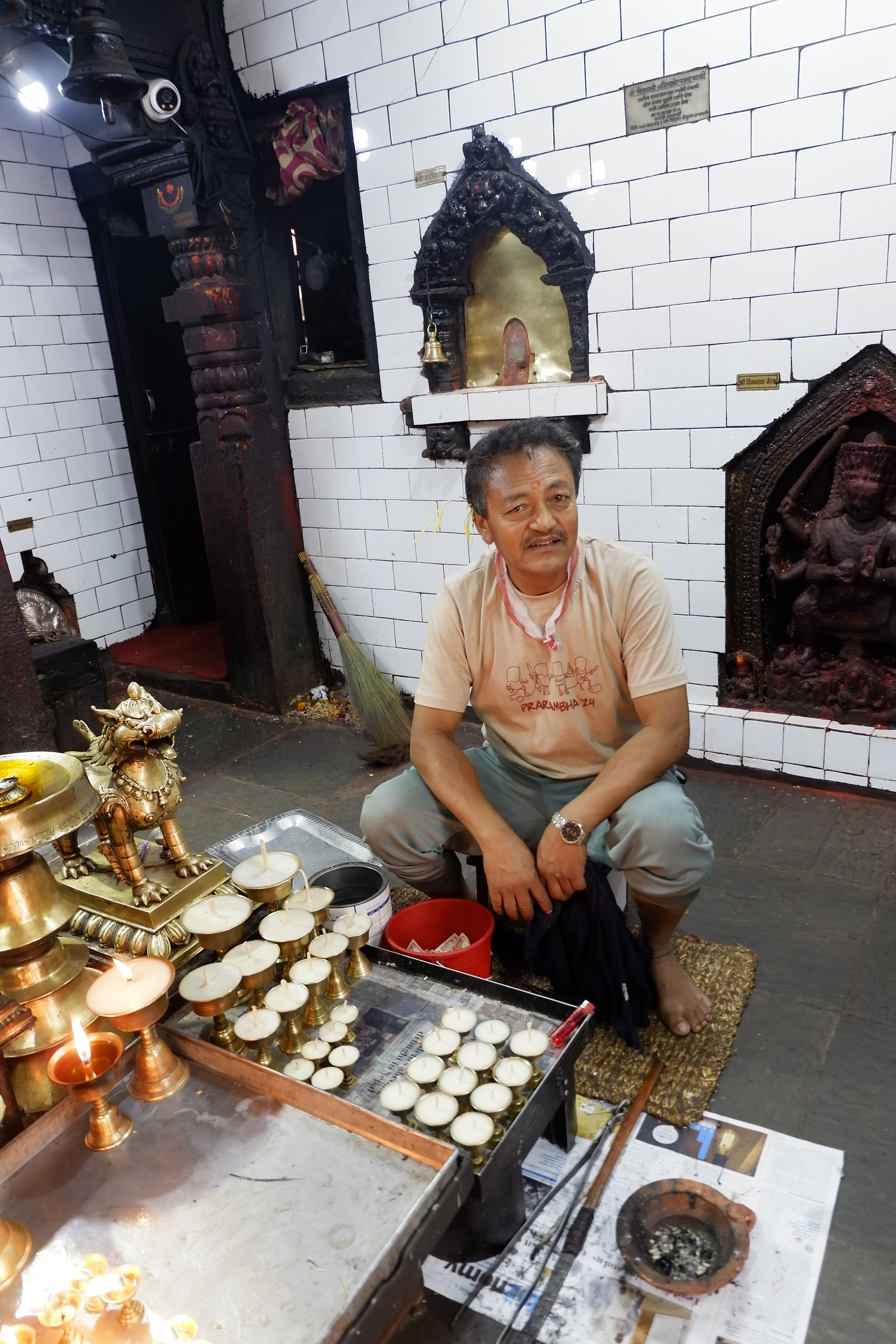 Lúc tôi tới mua vé, chú bán vé rất tiếc phải thông báo với tôi rằng hôm đó vẫn đang ở trong những ngày nghỉ lễ chính thức, du khách không có cơ hội gặp được Nữ thần. Chú rất thân thiện đánh dấu vào vé của tôi và dặn có thể quay lại vào ngày hôm sau, không cần phải mua vé mới vẫn có thể vào thăm Kumari Ghar. Chỉ đáng tiếc, tôi không có nhiều thời gian ở Kathmandu như thế, đành vào sân chụp mấy kiểu ảnh rồi đi ra. Nhà của Kumari theo kiến trúc tứ hợp viện, mỗi chi tiết trên cửa, cửa sổ, cửa thông gió đều rất tỉ mỉ, ngay đến tường đều được sơn bóng bảo quản rất đẹp, nhưng chụp ảnh lên thì không được tấm nào có ánh sáng hay màu ảnh đẹp ra hồn hết cả.